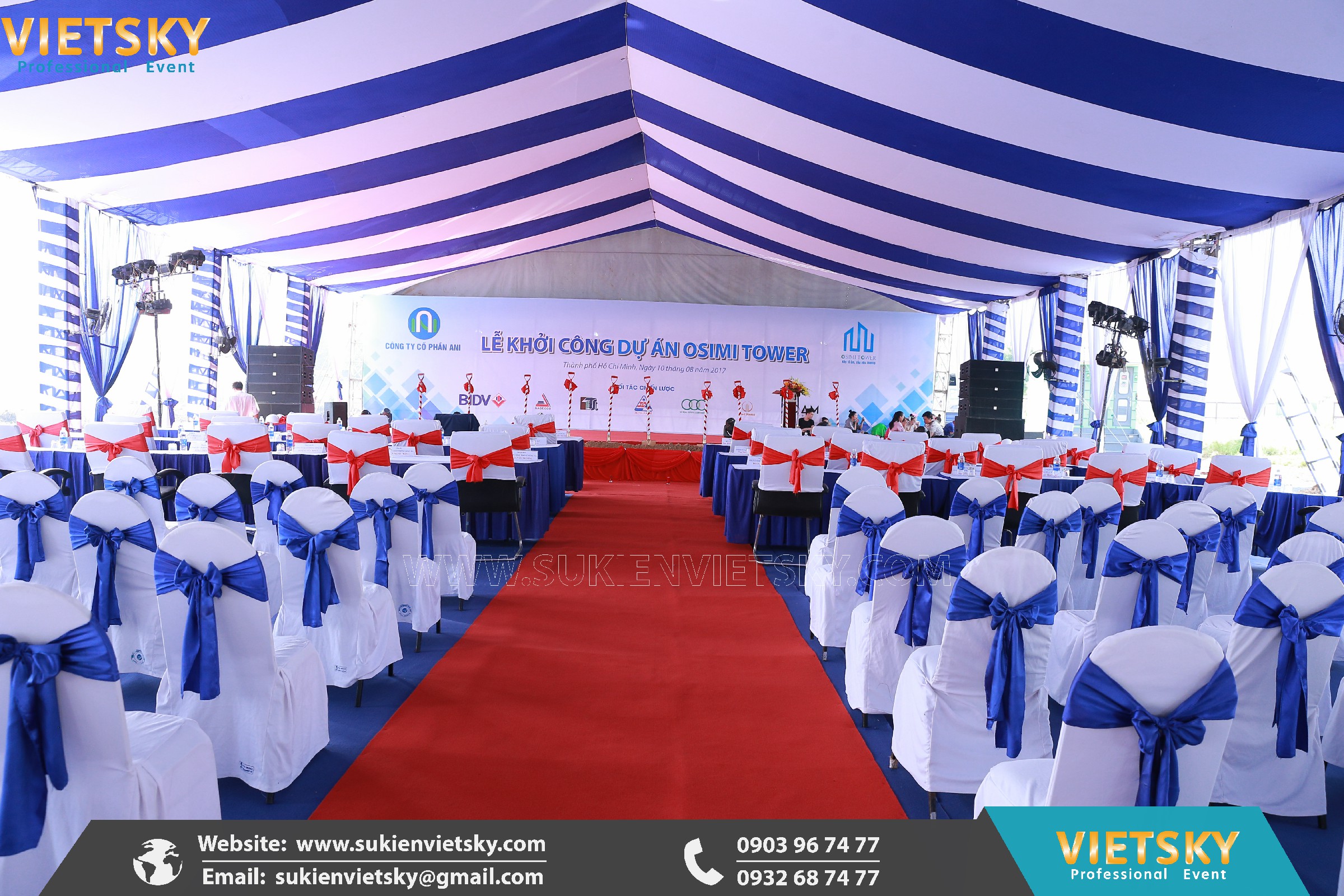 VIETSKY nhận cho thuê nhà bạt giá rẻ tại các quận huyện TPHCM như quận 1, quận 2, quận 3, quận 4, quận 5, quận 6, quận 7, quận 8, quận 9, quận 10, quận 11, quận 12, quận Thủ Đức, quận Bình Thạnh, quận Phú Nhuận, quận Gò Vấp, quận Tân Bình, quận Tân Phú, quận Bình Tân, huyện Hóc Môn,huyện Bình Chánh, huyện Nhà Bè…và các tỉnh Bình Dương, Bình Phước, Đồng Nai, Long An, Tây Ninh, Vũng Tàu… Nếu anh chị vẫn đang tìm nơi cung cấp nhà bạt cho sự kiện của mình thì đừng ngần ngại, hãy liên hệ ngay với VIETSKY để nhận được sự ưu đãi về giá cả và sự tư vấn tận tình và cụ thể cho nhu cầu của anh chị. Ngoài ra chúng tôi còn cho thuê tất cả thiết bị sự kiện như âm thanh ánh sáng, màn hình led, màn sao, tivi, sân khấu, bàn ghế, cổng hơi, trụ inox…. Và còn rất nhiều các thiết bị khác nữa.