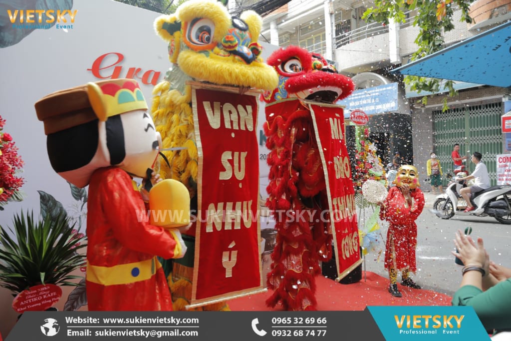 VIETSKY sẽ trang bị những dịch vụ tuyệt vời nhất trong buổi lễ khai trương như Đội múa lân thường là tiết mục mở đầu cho một buổi lễ khai trương hông phát, hình thức này sẽ mang lại không khí trang nghiêm nhưng vô cùng sôi động và thu hút người tham dự. Lân sư rồng khai trương là sự kết giữa nghi lễ cổ điển sen lẫn hiện đại không kém phần thời thượng, tùy mỗi nhu cầu và sở thích của khách hàng sẽ có những tiết mục khác nhau làm cho buổi lễ thêm đa dạng, phong phú .