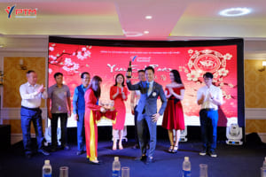 Công ty rất vinh hạnh khi được đón tiếp các vị khách quý, đối tác, khách hàng thân thiết đến dự tiệc tất niên. Công ty rất vui khi luôn nhận được sự ủng hộ, quan tâm của quý khách trong suốt thời gian vừa qua. Những tiết mục văn nghệ sôi động, đậm chất “cây nhà lá vườn” cùng những phần báo cáo hài hước của các táo PTM đã khuấy động không khí, khiến hội trường náo nhiệt, sôi động hơn rất nhiều. Vậy mới nói, nhân viên PTM không chỉ chăm chỉ, kỷ luật mà còn rất năng động, đa tài.
